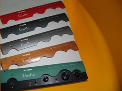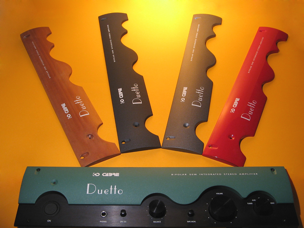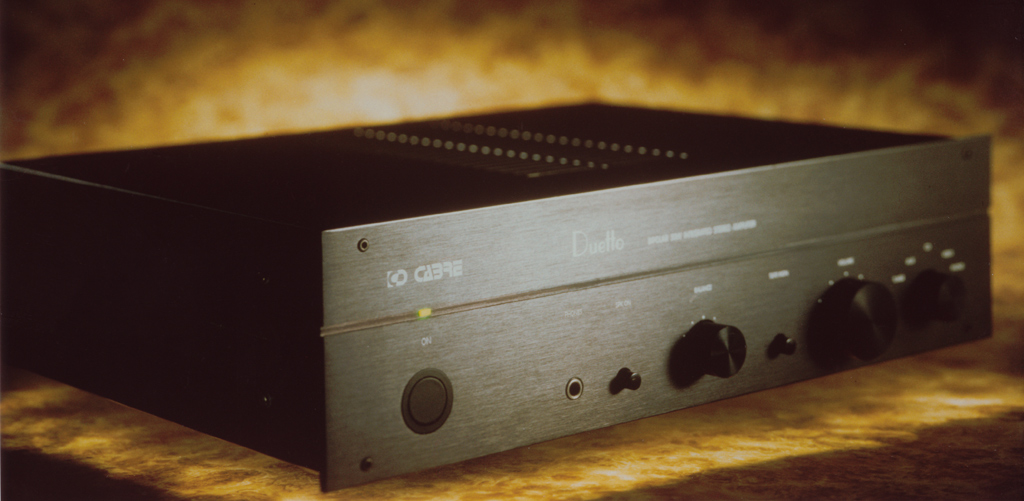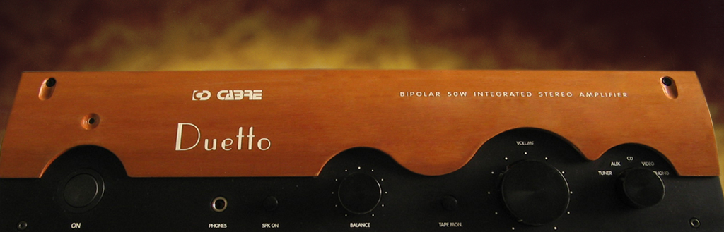 L'amplificatore integrato DUETTO nasce per rispondere alla esigenza, spesso trascurata, di garantire un altissimo livello di qualità a tutti coloro che, per scelte motivate in vario modo, si rivolgono ad un sistema di amplificazione di potenza contenuta: in esso sono riassunti vent'anni di tradizione CABRE nei sistemi di amplificazione multitelaio (con preamplificatore e finale di potenza separati), dai quali eredita il pregio di una realizzazione senza compromessi e la fedeltà di una indiscussa qualità timbrica.